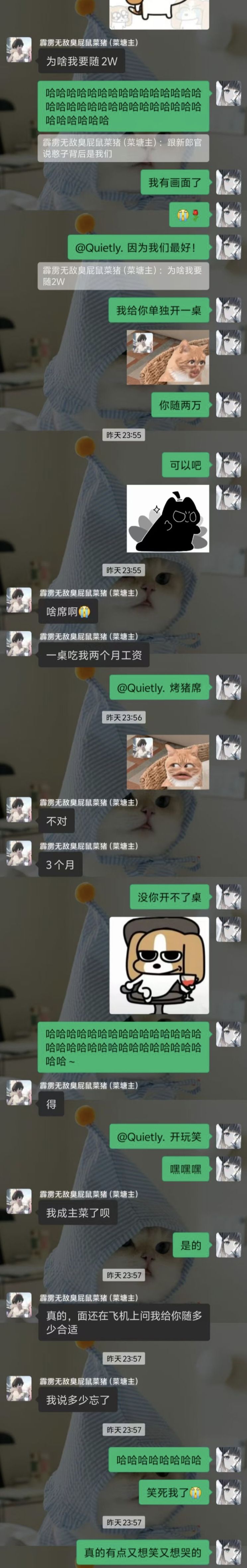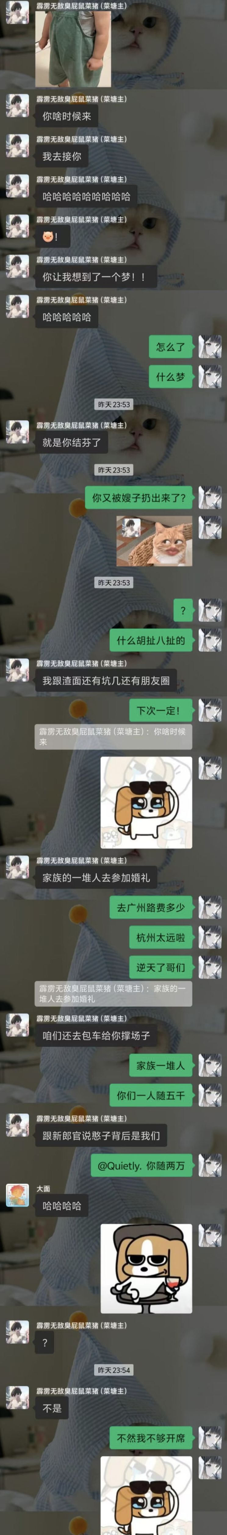 家族的人也一直在变化在更换,家族群的人数也在一直在提升…从刚来不多的102个到现在的快270的家族大群。 家族的表情包已经从之前的蓝哥沐风遍地跑,到现在的菜猪表情包遍地跑,哈哈哈哈~语音里的人也一直在更换… 不过的不过还是很多老人也是一直在的,也是当管理走下去的最大的动力,大家都在玩也很爱我自然也就不舍得离开了。