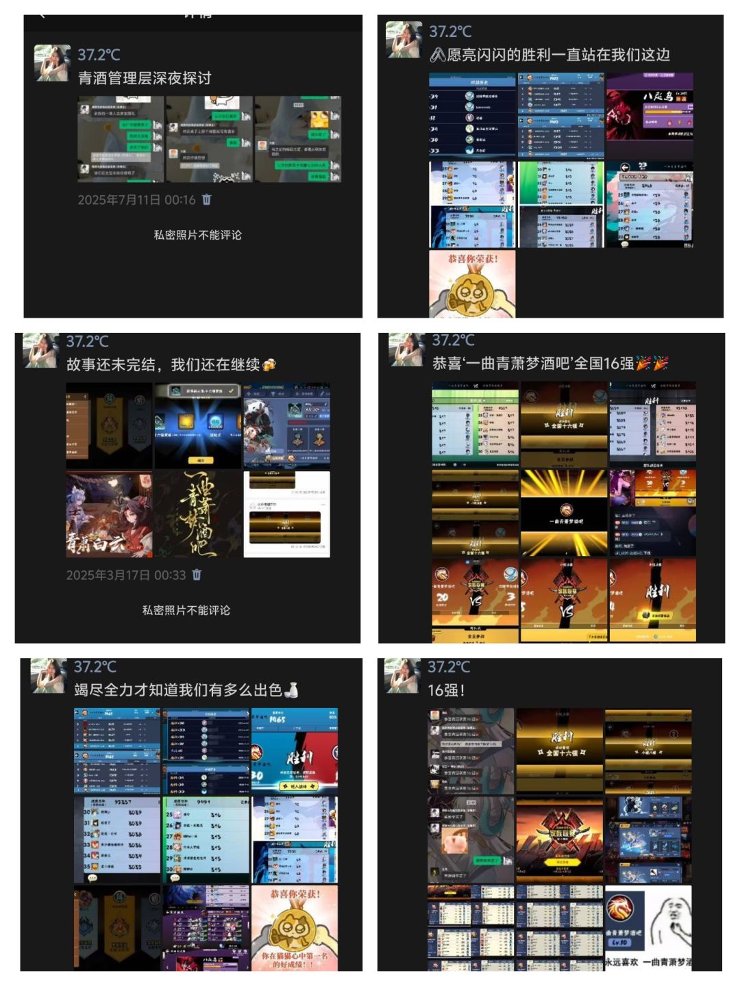 再首次巅峰24.3.7号的第一次联赛名次‘全国十六强’可以说从来没想过的,最开始都想的是大家打个32强就很好了,没想到的意外惊喜居然赢了茶底世界也正因为这场联赛认识了格佬。