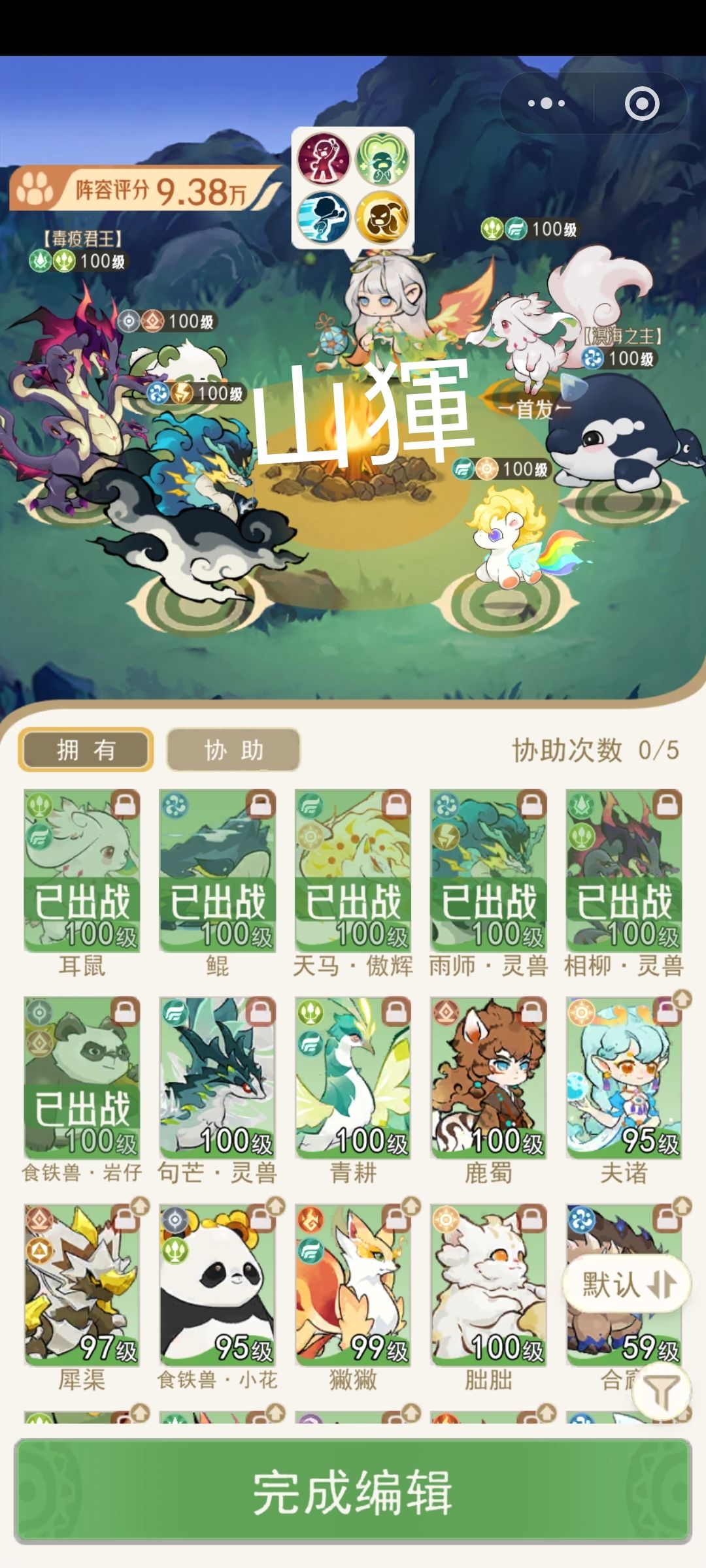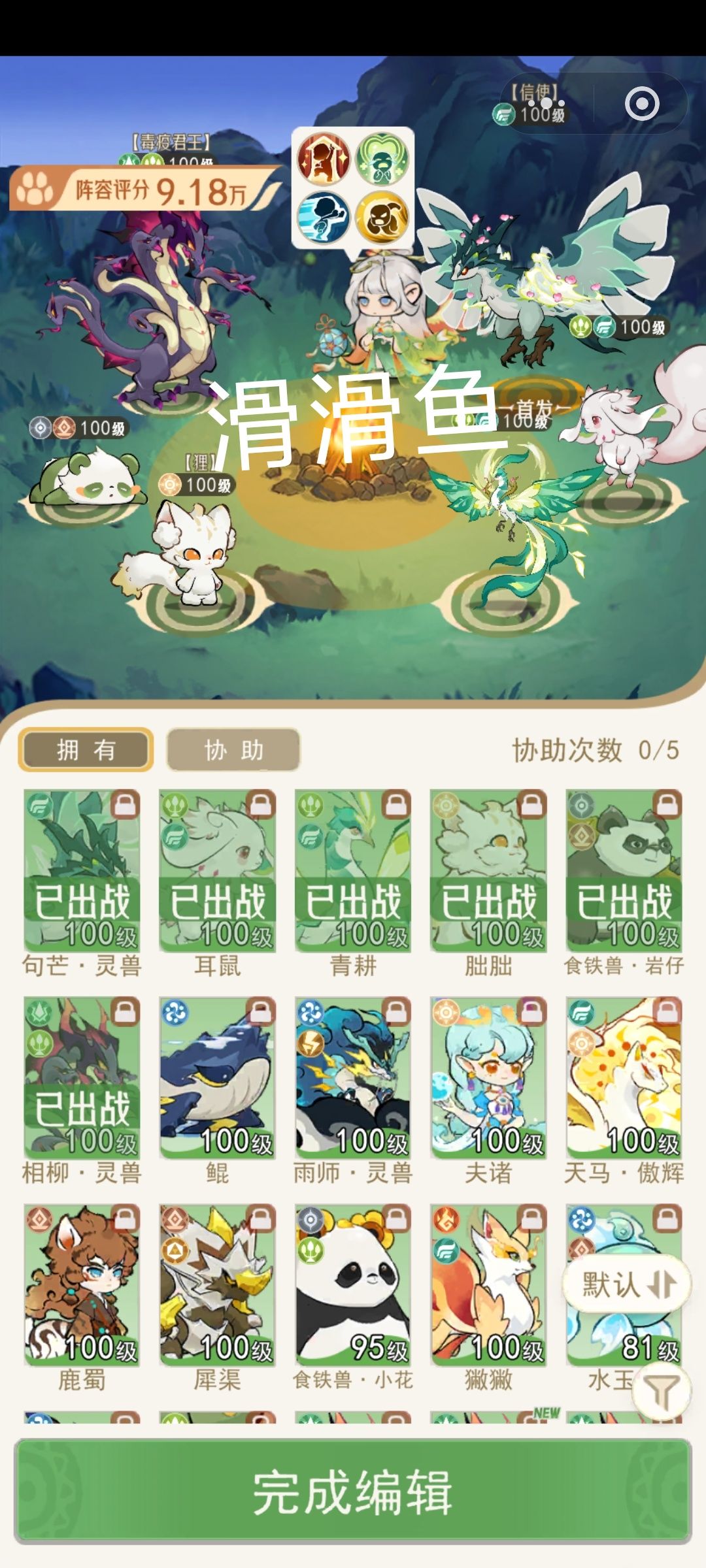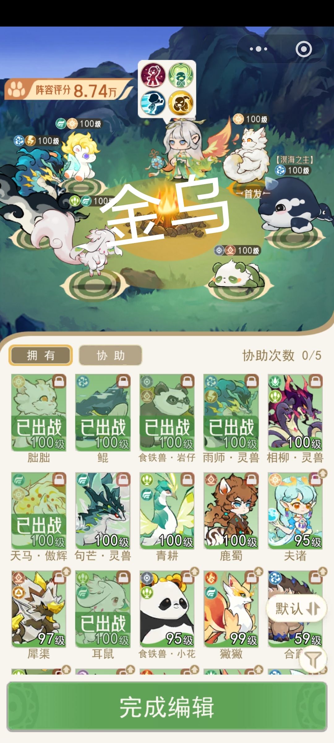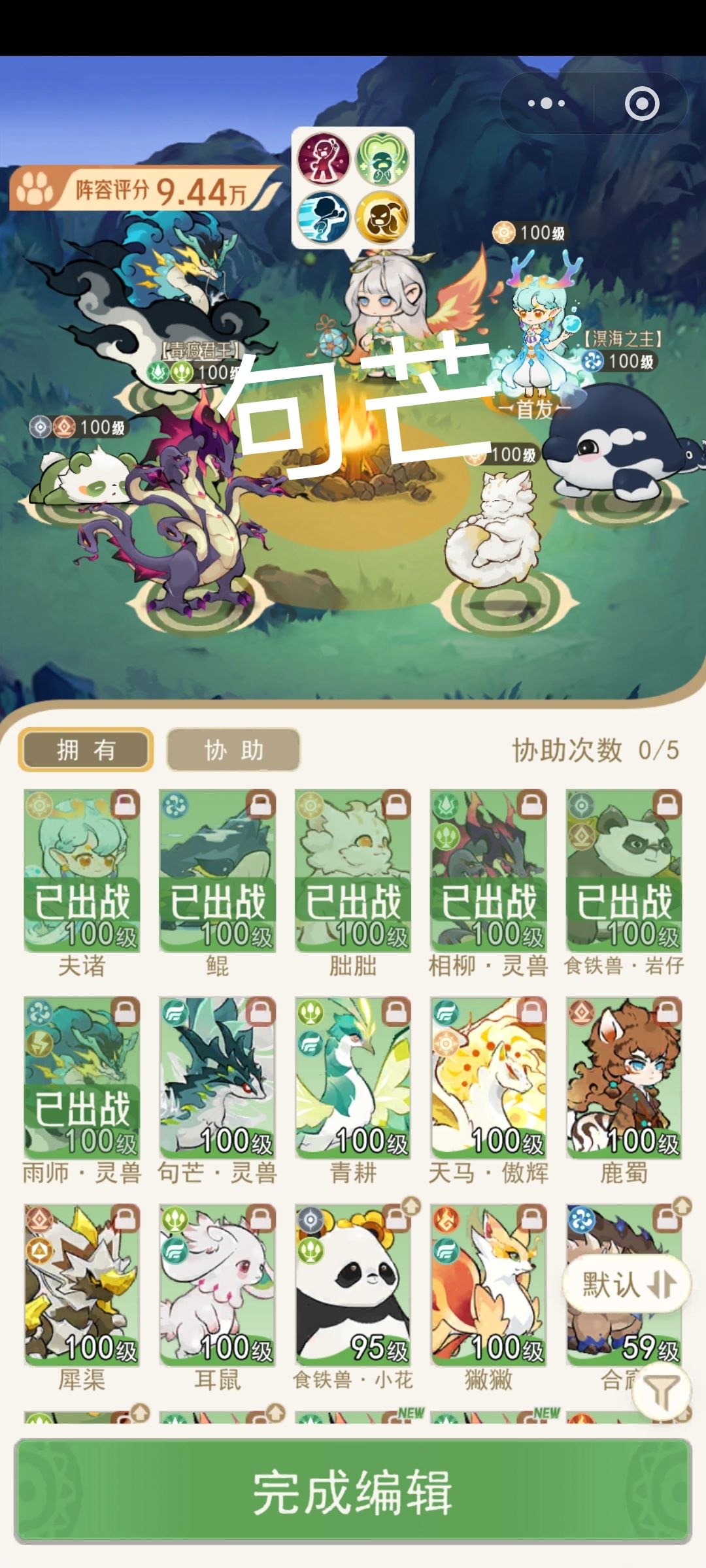 18天,陆陆续续通关了系昆山,比较容易卡的就是句芒和金乌,当然每个人养的宝宝不一样,卡关可能也不一样,我个人用的阵容如图,大多都是换一下顺序,尽量选能克制对方的宝宝。技能配置是一群攻三辅助,辅助技能看着选,主要是为了不赌技能。前面基本上是靠克制先手秒,后面是秒不了的,因为血量都是两三千的,至少要抗一轮,所以尽量准备像朏朏、夫诸这种可以控制的宝宝,人物技能赌快躲开,没什么捷径,主要还是赌运气,多打几次就好。