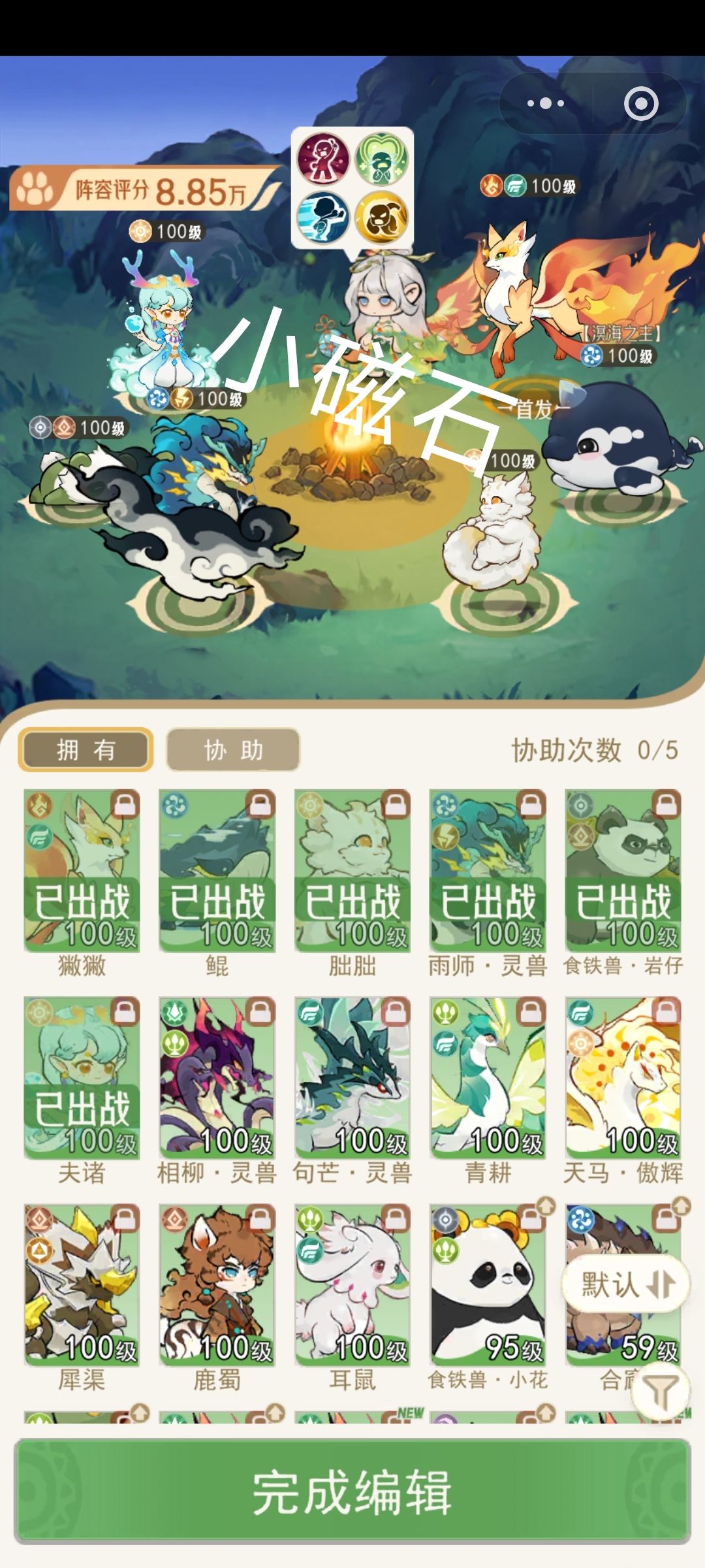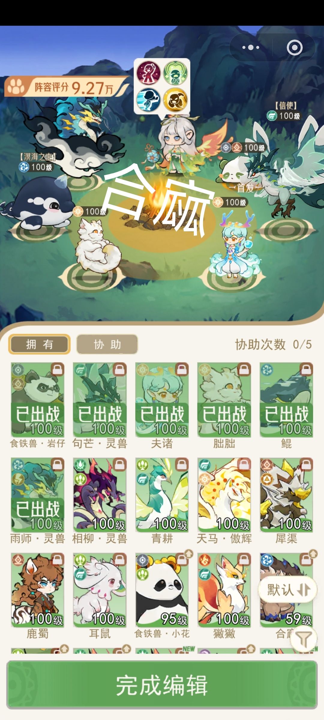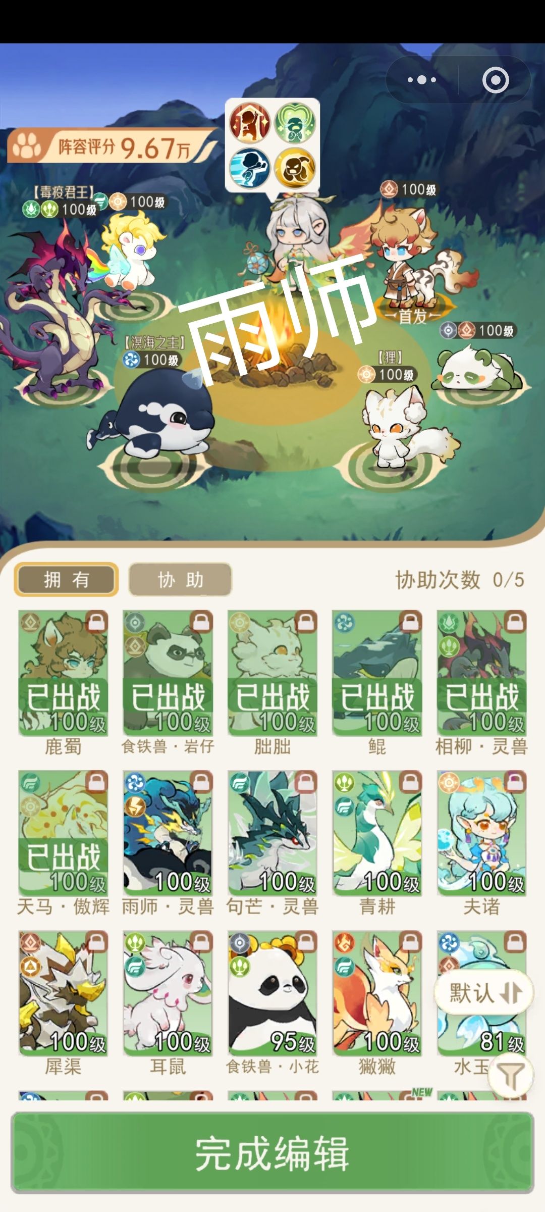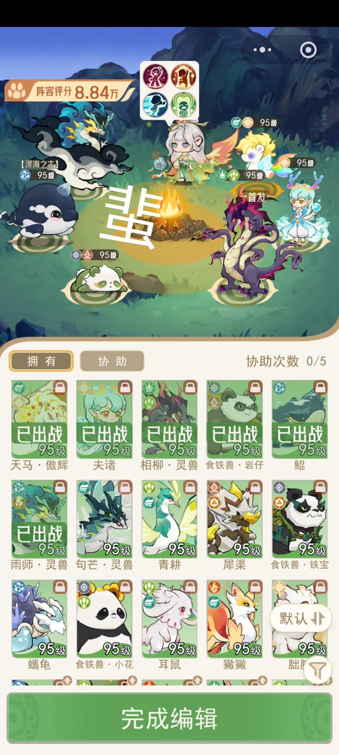18天,陆陆续续通关了系昆山,比较容易卡的就是句芒和金乌,当然每个人养的宝宝不一样,卡关可能也不一样,我个人用的阵容如图,大多都是换一下顺序,尽量选能克制对方的宝宝。技能配置是一群攻三辅助,辅助技能看着选,主要是为了不赌技能。前面基本上是靠克制先手秒,后面是秒不了的,因为血量都是两三千的,至少要抗一轮,所以尽量准备像朏朏、夫诸这种可以控制的宝宝,人物技能赌快躲开,没什么捷径,主要还是赌运气,多打几次就好。