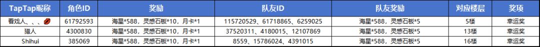 本期活动已结束,感谢冒险者们的参与,以下是获奖名单: