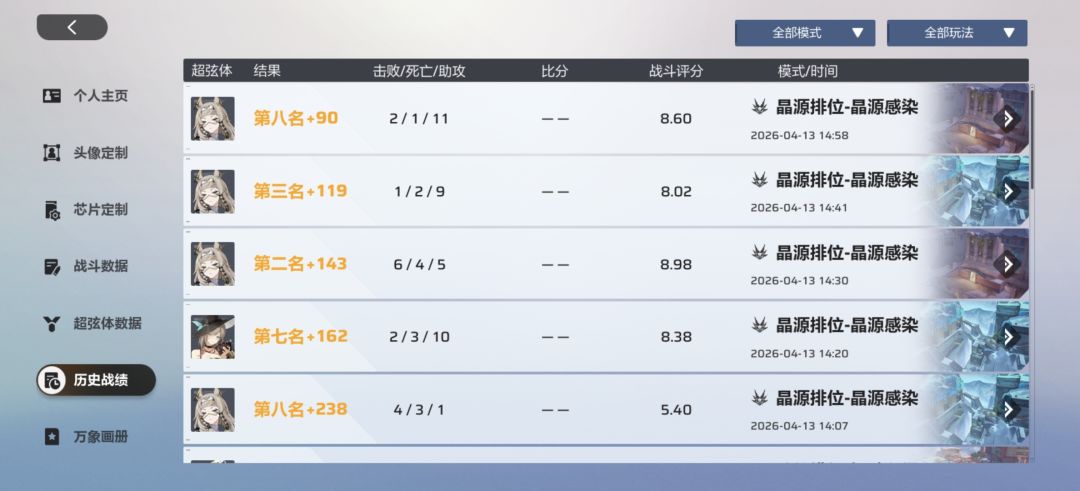 开了几把晶源发现一个奇怪现象,这里面的几把,大家都是开黑之王,同时都设了隐藏战绩,包括一些匹配排位都是这样,难道都是真人,那为啥打架占车发文字与扣表情没一人回,是不爱嘛