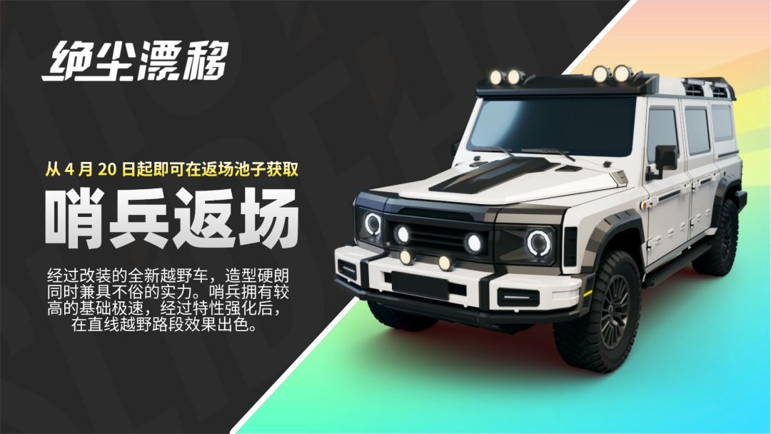 经过改装的全新越野车,造型硬朗同时兼具不俗的实力。哨兵拥有较高的基础极速,经过特性强化后,在直线越野路段效果出色。