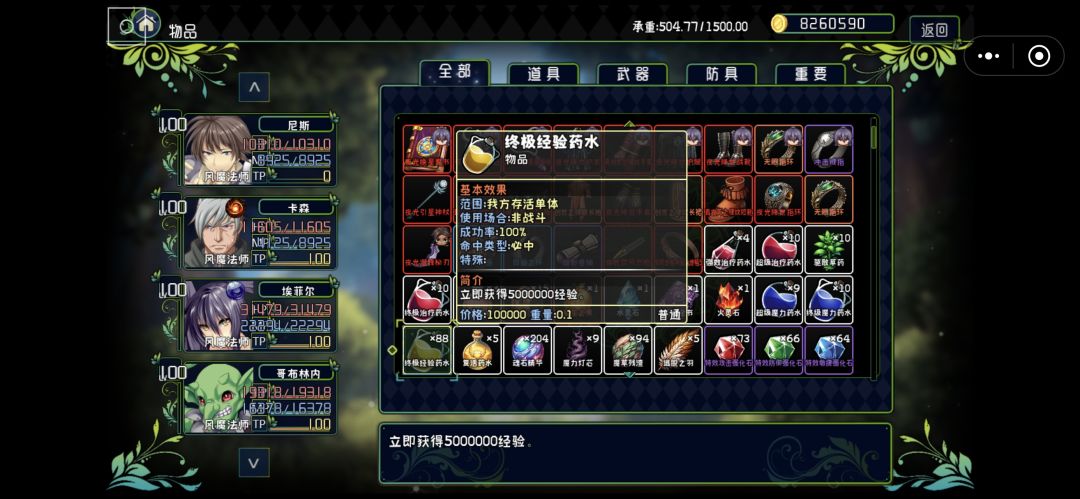 经验药水尽量都喂给主角,新入队的成员是直接追上主角当前等级的,当你战斗结束发现角色移速特别慢,就打开菜单,物品。查看右上角是不是负重超过上限了。