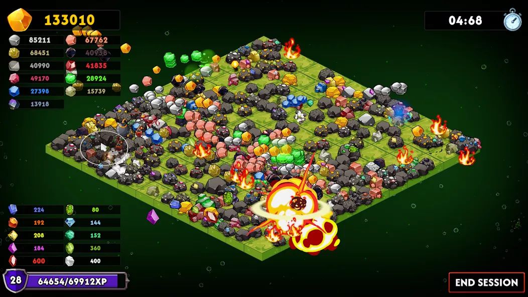 一款增量式采矿游戏,你将在游戏中开采岩石、收集资源、穿越多个独特的世界,发现神器、打造镐子,并购买大量永久升级!