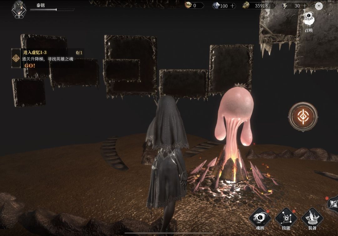 并且游戏中有很多地方风格很割裂,在如此高逼格的背景、场面下,ui粗糙(例如图一的简易地图,还有图里关卡名字感觉文案部已经“绞尽脑汁”了是吧)、字体风格不匹(进游戏“开启巨神书库”几个字与画风不符),暗黑风里要挤出一点怪诞(图二,在漆黑庄重的主城,一个会拥抱人的粉色肉球是关卡进入点。。。?这个玩意的来源展示或者背景介绍下都不会让人满头问号),让人感觉暗黑哥特风走的太刻意,小细节也不敢细看推敲。