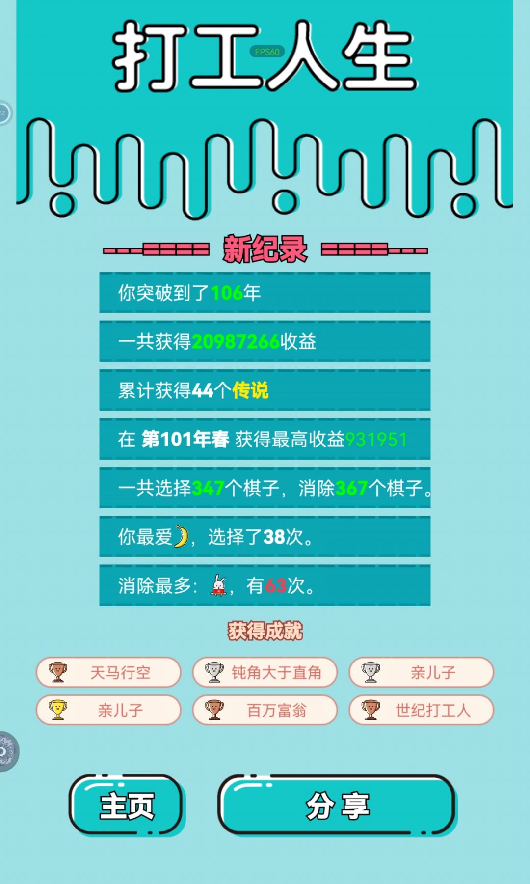 游戏依靠随机抽取的“棋子”来发展经济,偿还欠款,目标是活过20年,后期可以选择修仙或者躺平,竭尽所能给自己带来更高的分数。由于这个游戏成型路线多,棋子类型多,再加上各种天赋加成,让这个游戏重玩度高,而且在重玩过程中可以自己构建自己的成型思路。