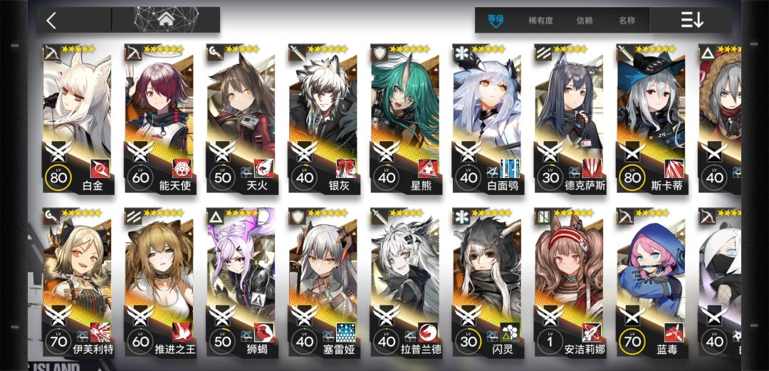 鉴于最近貌似新人激增,再多说一句,这游戏本质上还是一个团队型的游戏,一两个精二附带一堆精一20的干员不如一队精一60-70,没必要强行为了追潮流卡住自己的进度,毕竟一队精二六星+德克萨斯只是大佬30多天前的练度。
