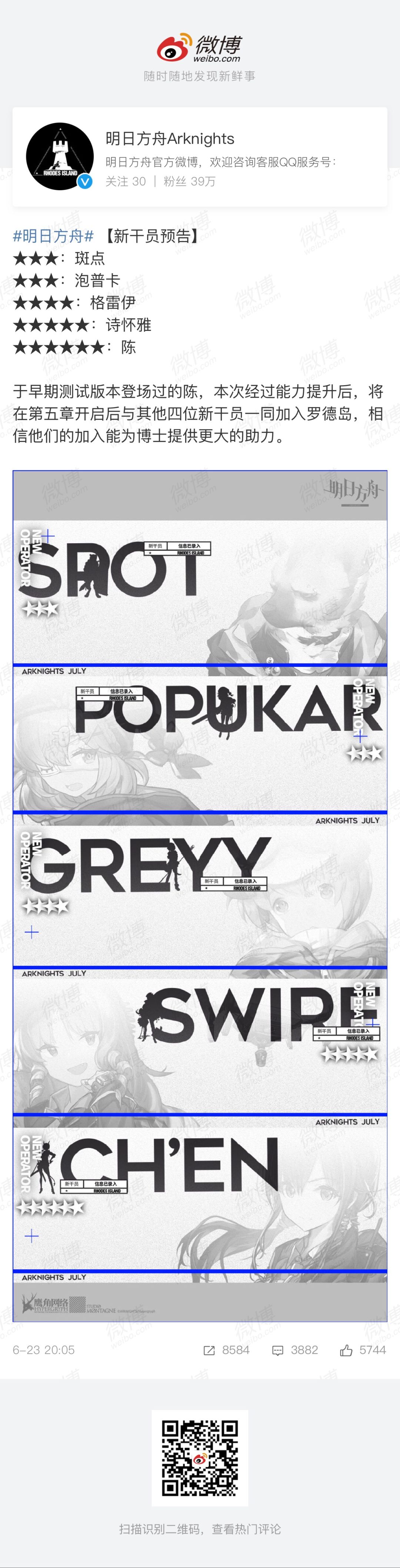 明日方舟官博失踪人口回归啦!今日,官方终于是放出了下一次大更新的预告,在新预告中除了明确说明了将会开放第五章外,最受玩家关注的还是图片中的黑影。相信不少玩过二测的玩家都知道,这个黑影一眼就能看出是陈sir,不过对于萌新来说,对陈sir还是非常陌生的。所以向初雨凉笙叹#9775以及杦#8148两位二测时的玩家详细了解了一下陈,和大家简单聊一下著名的陈Sir缺点以及优点。
