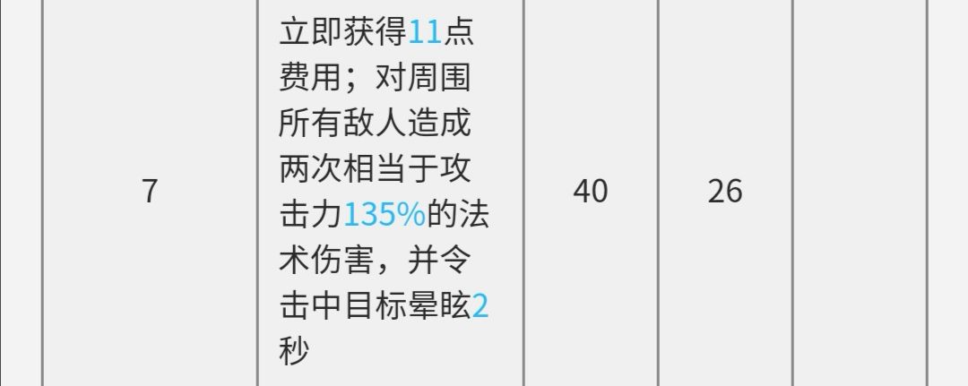 开场14【40-26】秒后德狗使用技能,得到11费,加上本身自动回复【14】,已经达到25费,此时可同时下推王和凛冬。目前存有费用0。